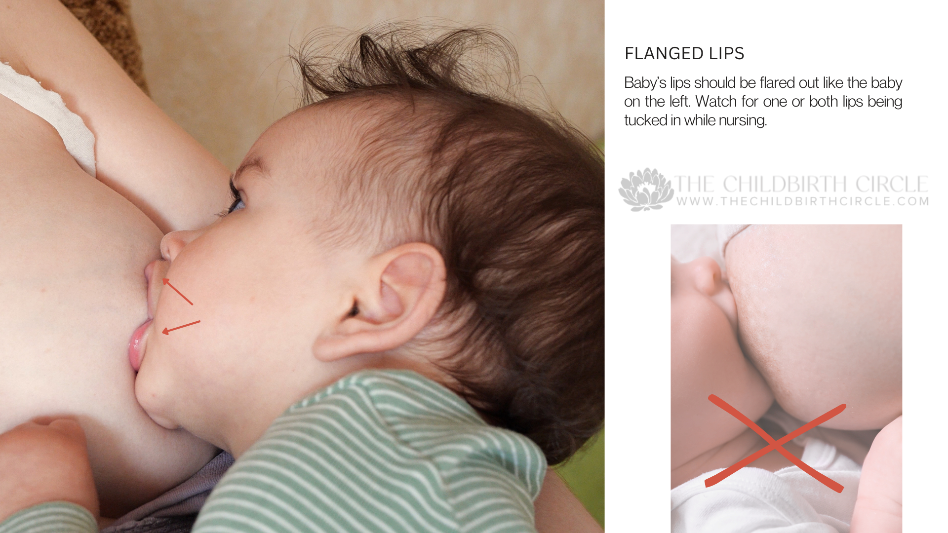 Remember that even if your latch looks good, breastfeeding can still hurt. This blog isn’t meant to replace the advice of a professional. If you experience pain during feedings, you should reach out to a lactation support professional as soon as possible to help you troubleshoot and get you feeding comfortably. The Childbirth Circle has two Certified Lactation Counselors on staff who provide in-home and in-office lactation support.
